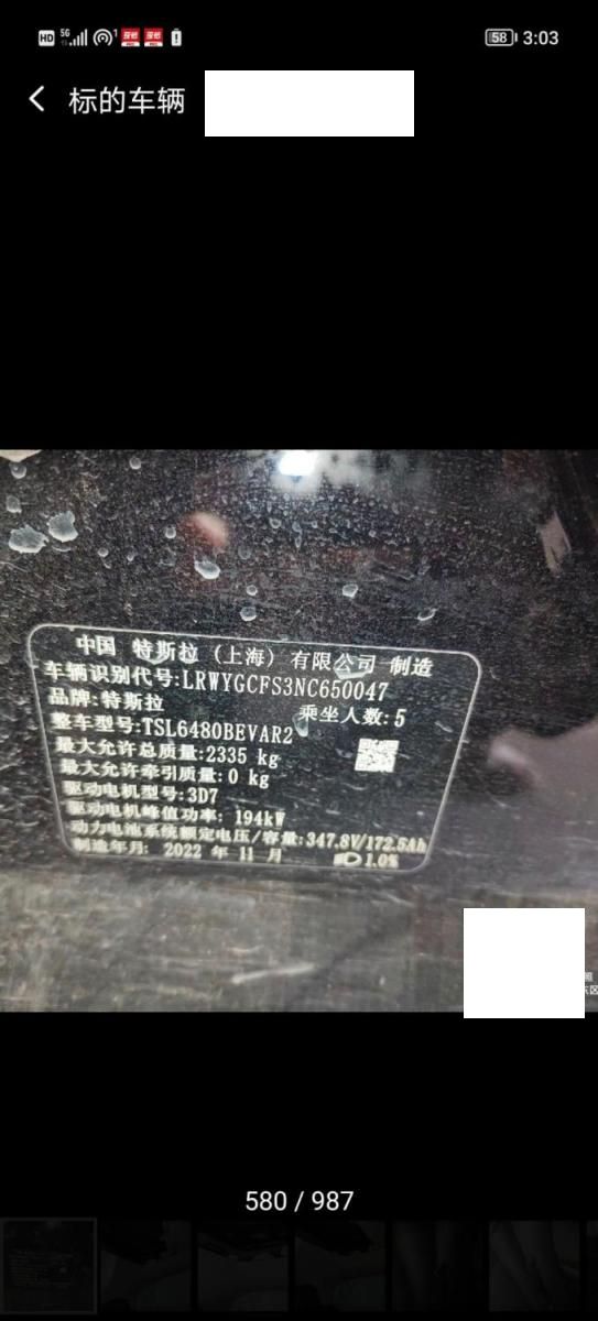 初次登记日期 2022-11-24 车辆名称 特斯拉 Model