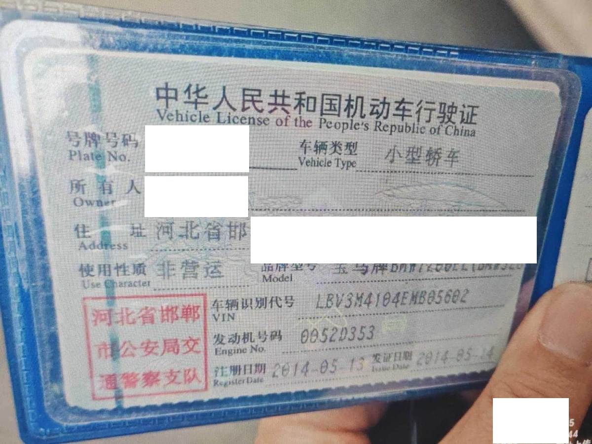 初次登记日期 2014-05-13 车辆名称 宝马3系