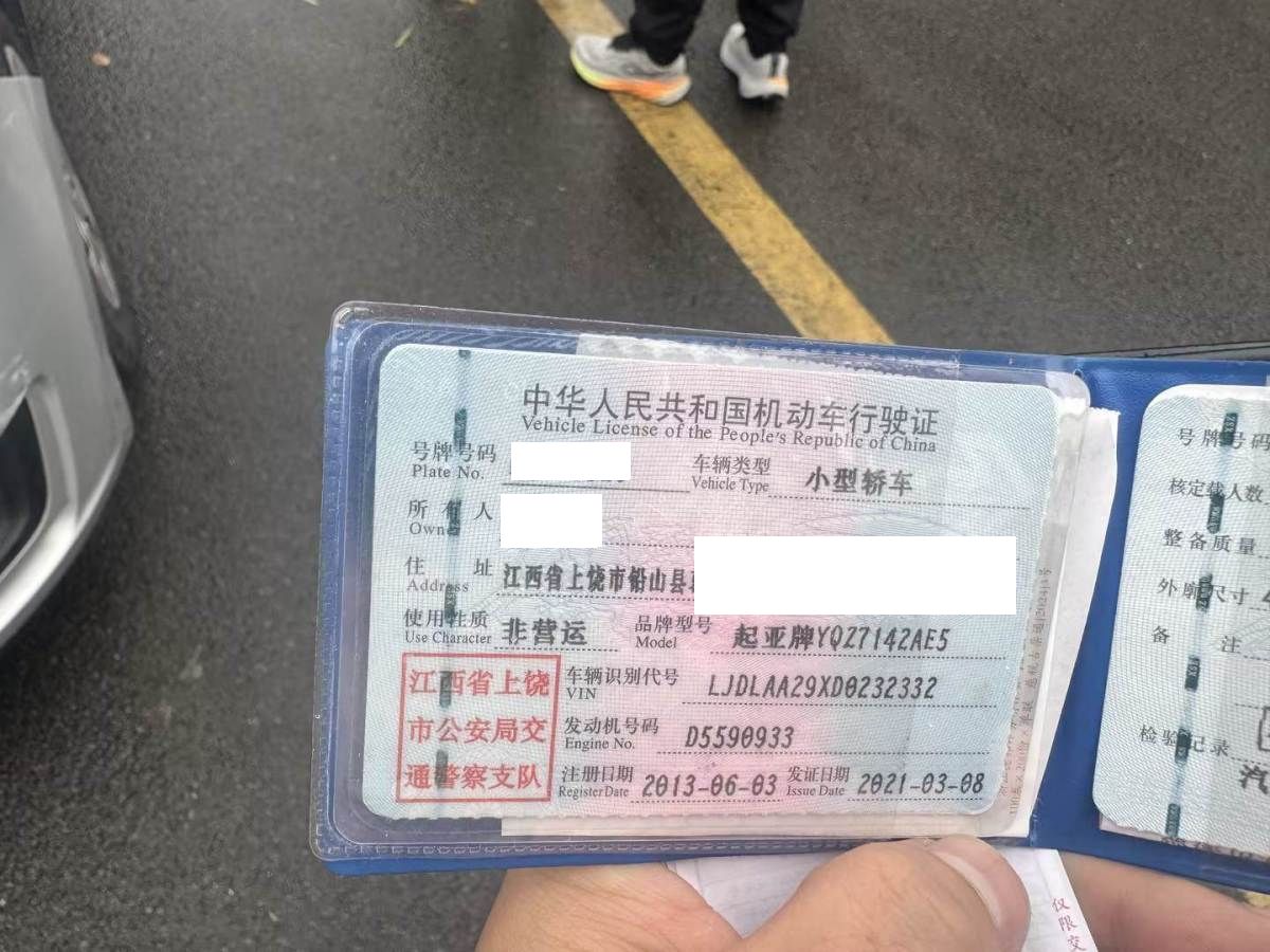 车牌号 赣****** 品牌 起亚