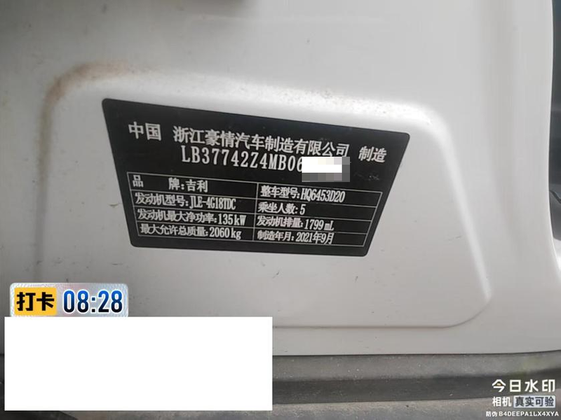 初次登记日期 2021-11-24 车辆名称 吉利汽车