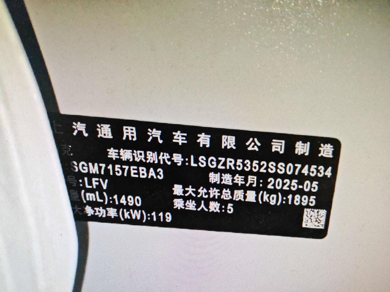 底盘号码 LSGZR5352SS074534 变速箱类型 手自一体