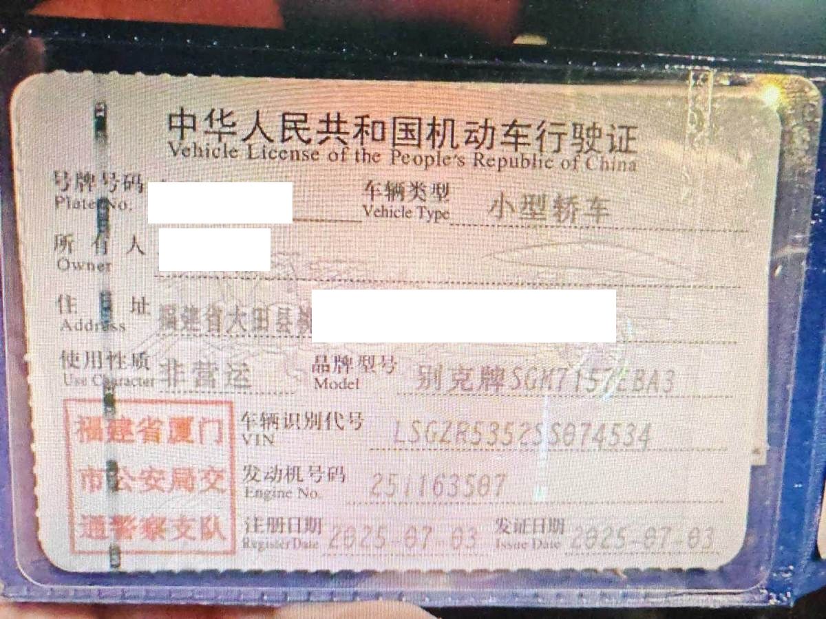 初次登记日期 2025-07-03 车辆名称 别克 君威