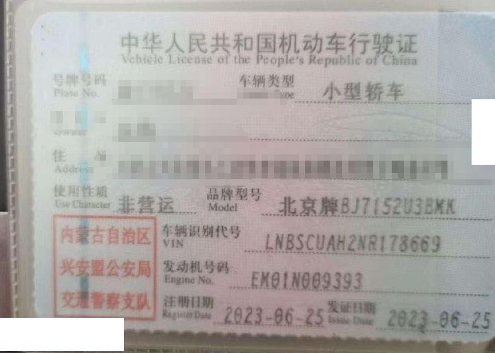 车辆归属地 内蒙古自治区兴安盟 车辆停放仓库 内蒙古自治区兴安盟