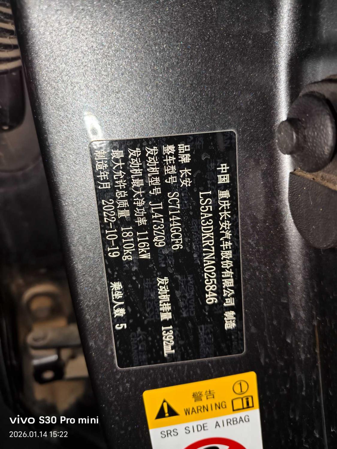 底盘号码 LS5A3DKR7NA025846 变速箱类型 自动