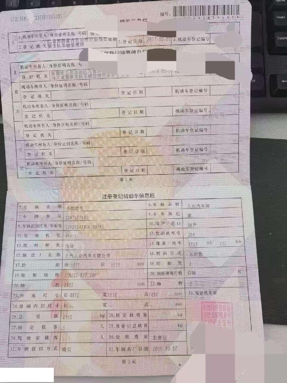 初次登记日期 2017-06-07 车辆名称 大众 帕萨特