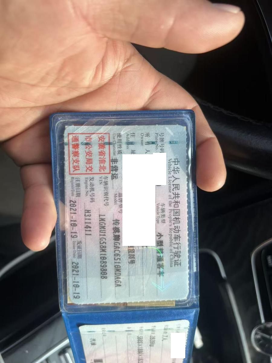 初次登记日期 2021-10-19 车辆名称 广汽传祺
