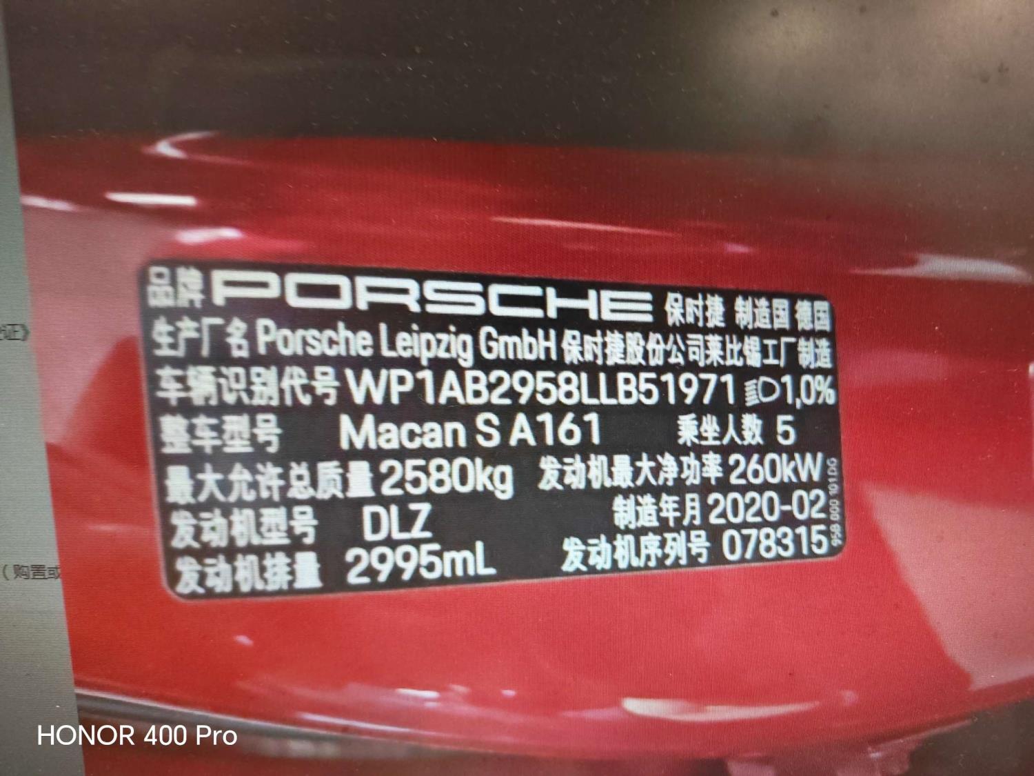 初次登记日期 2020-05-08 车辆名称 保时捷