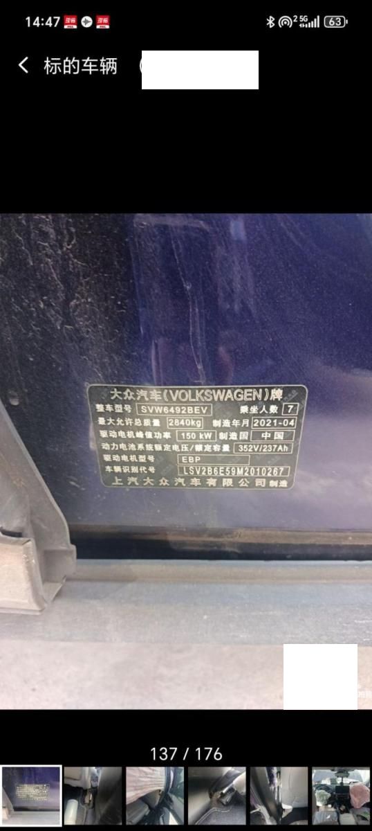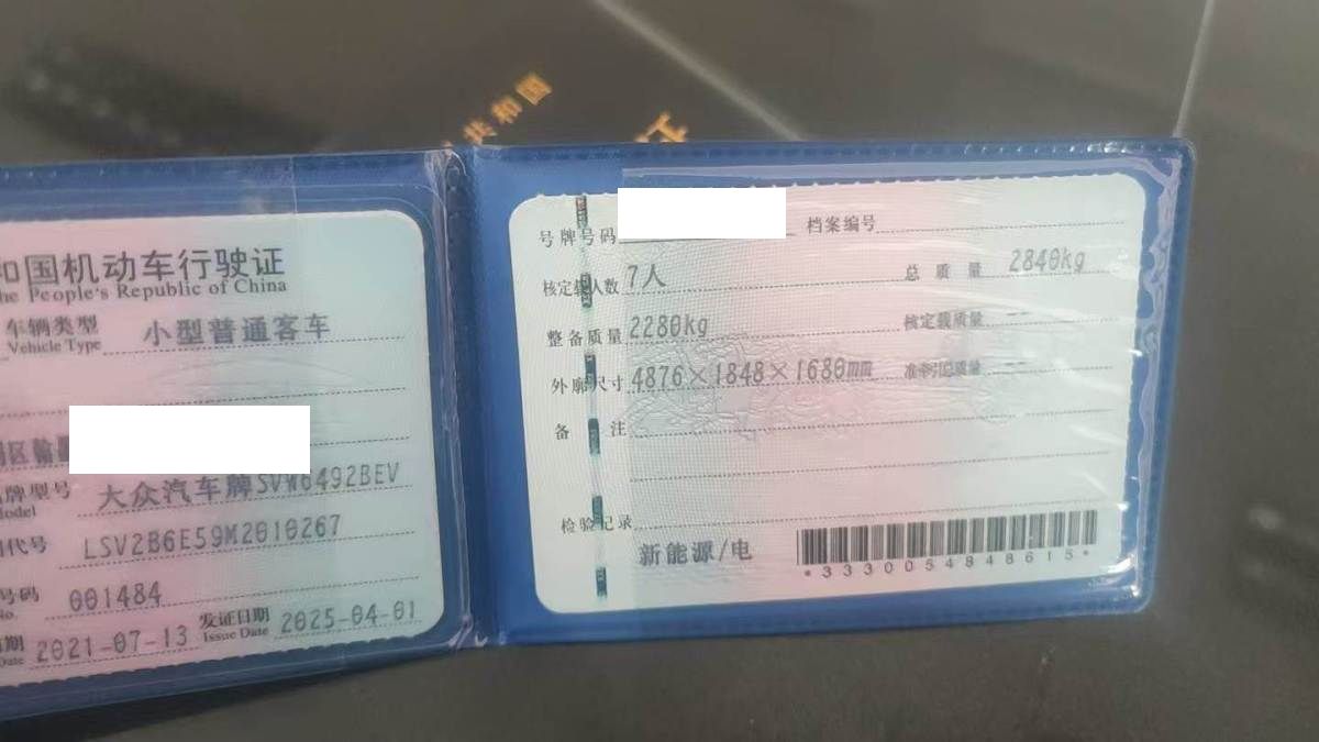 初次登记日期 2021-07-13 车辆名称 大众牌