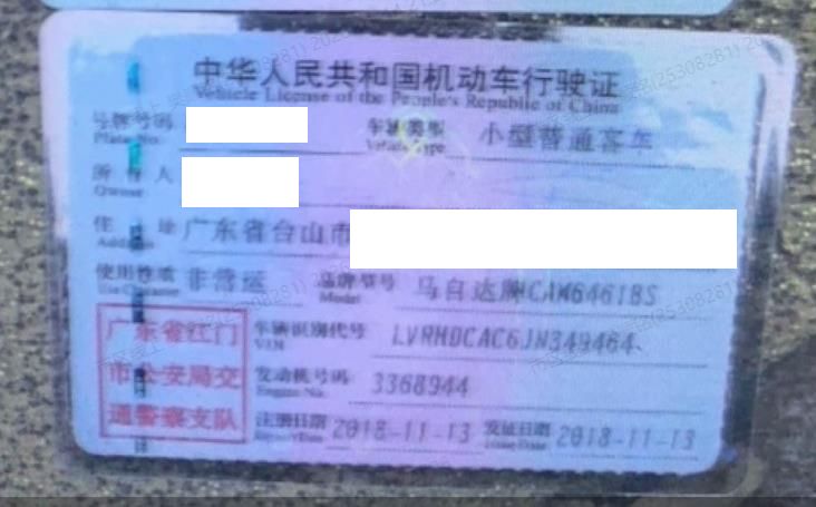 车辆归属地 广东省江门市 车辆停放仓库 广东省江门市江门市