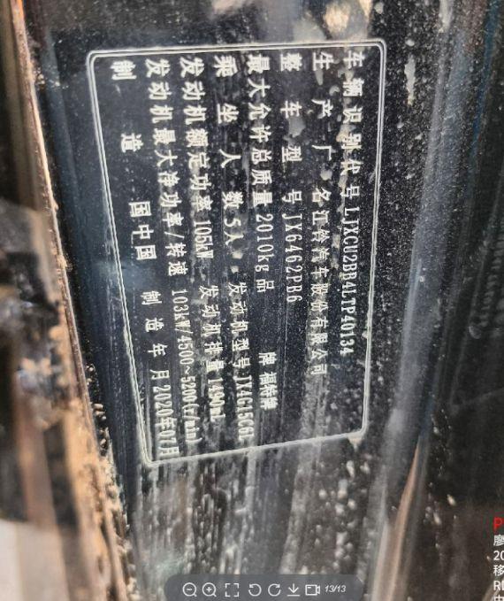 底盘号码 LJXCU2BB4LTP40134 变速箱类型 自动