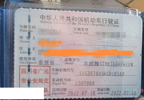 车牌号 川****** 品牌 丰田