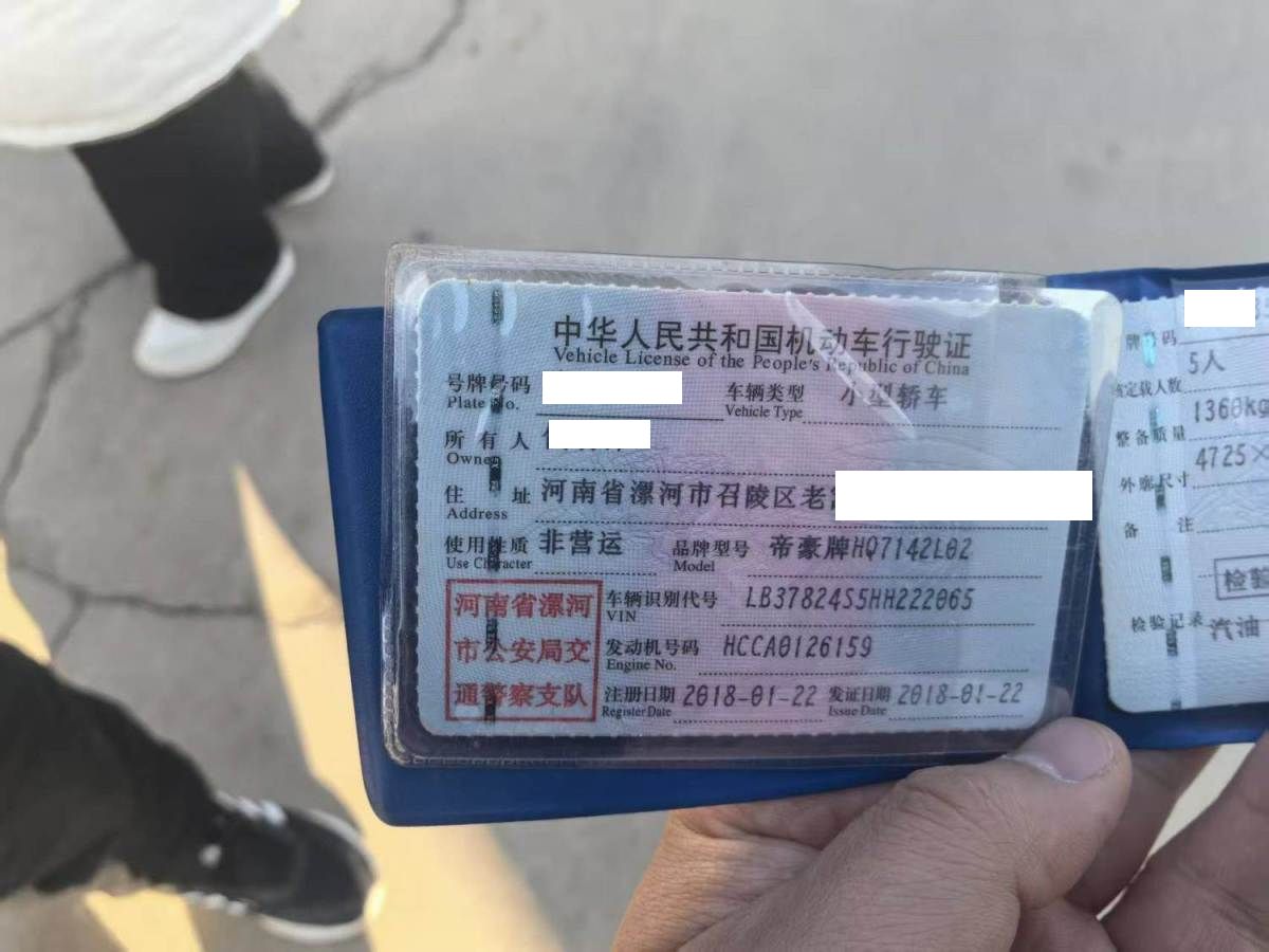 初次登记日期 2018-01-22 车辆名称 吉利汽车 帝豪GL