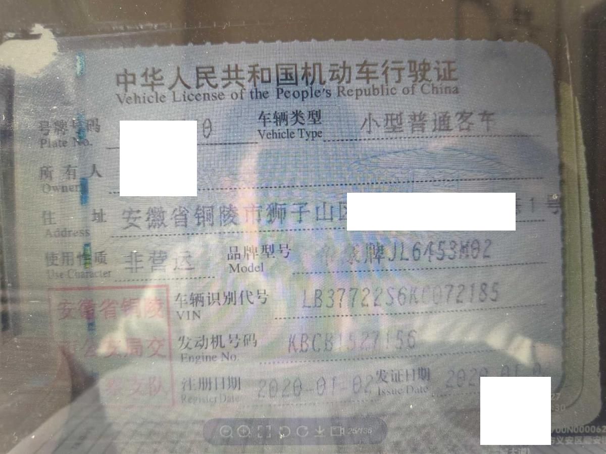 初次登记日期 2020-01-02 车辆名称 吉利汽车 远景X6
