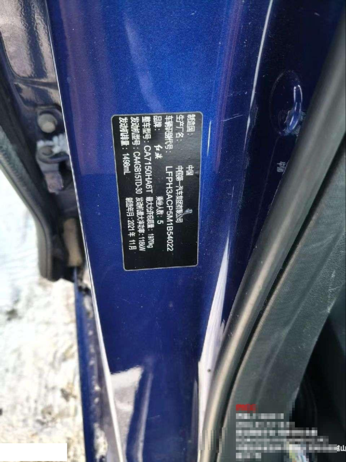 初次登记日期 2022-02-08 车辆名称 红旗H5
