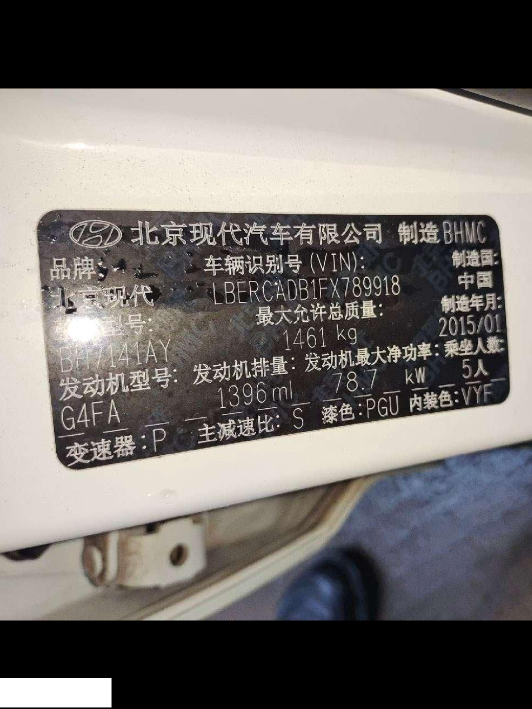 初次登记日期 2015-03-17 车辆名称 现代 瑞纳