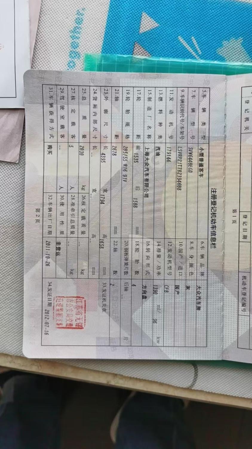 初次登记日期 2012-07-16 车辆名称 大众 途安
