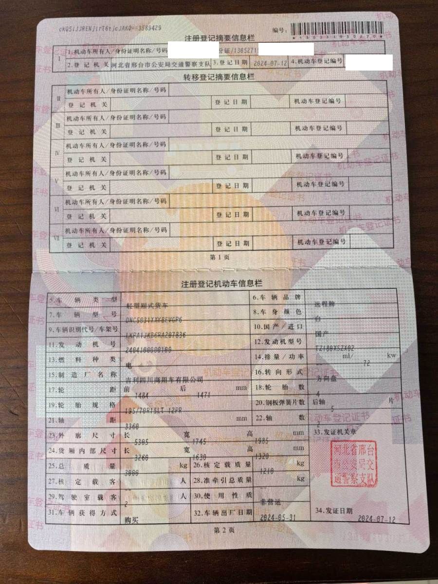 初次登记日期 2024-07-12 车辆名称 远程星享