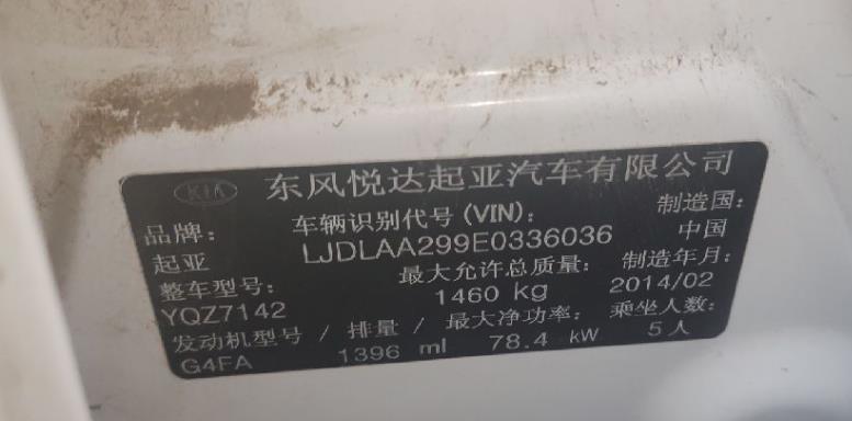 初次登记日期 2014-05-07 车辆名称 起亚牌