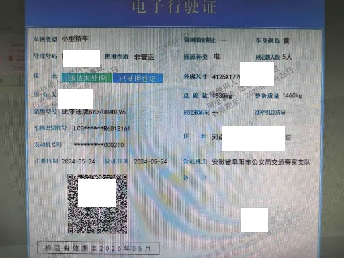 车牌号 皖****** 品牌 比亚迪