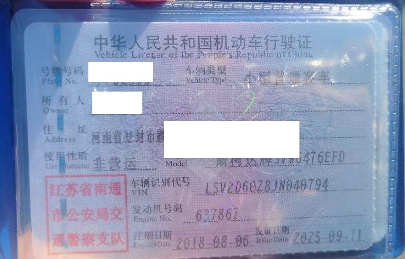 车辆归属地 江苏省南通市 车辆停放仓库 浙江省舟山市舟山市