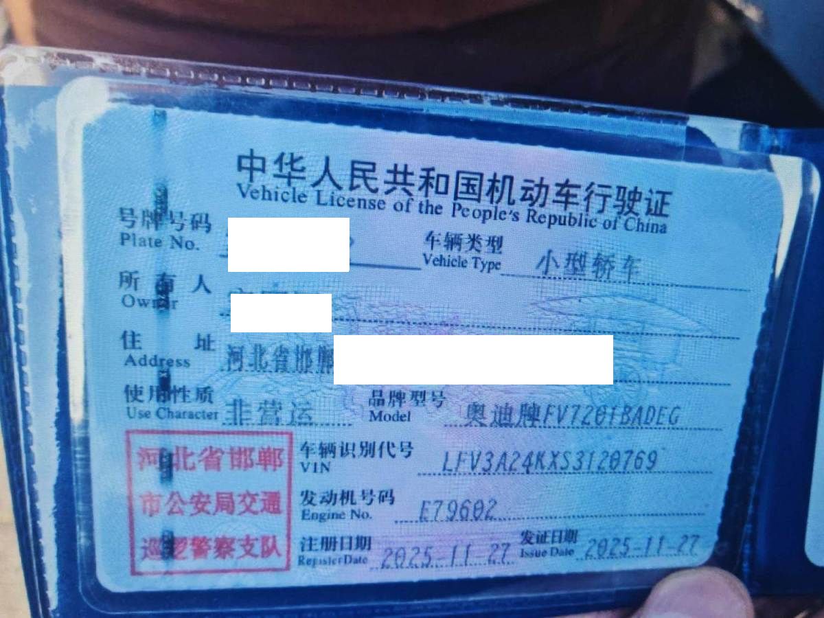 初次登记日期 2025-11-27 车辆名称 奥迪A6L