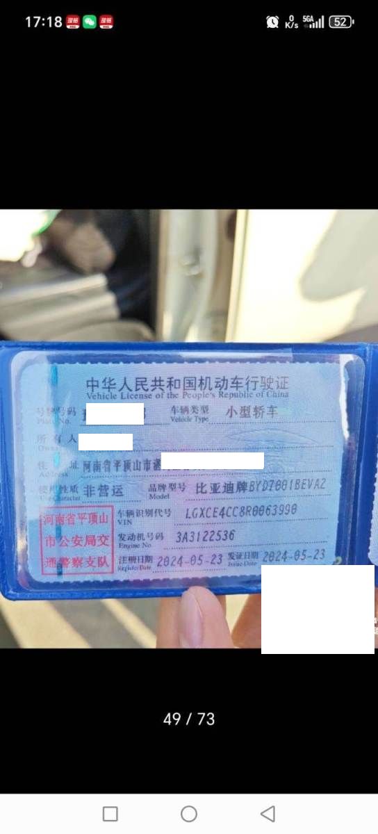 初次登记日期 2024-05-23 车辆名称 比亚迪
