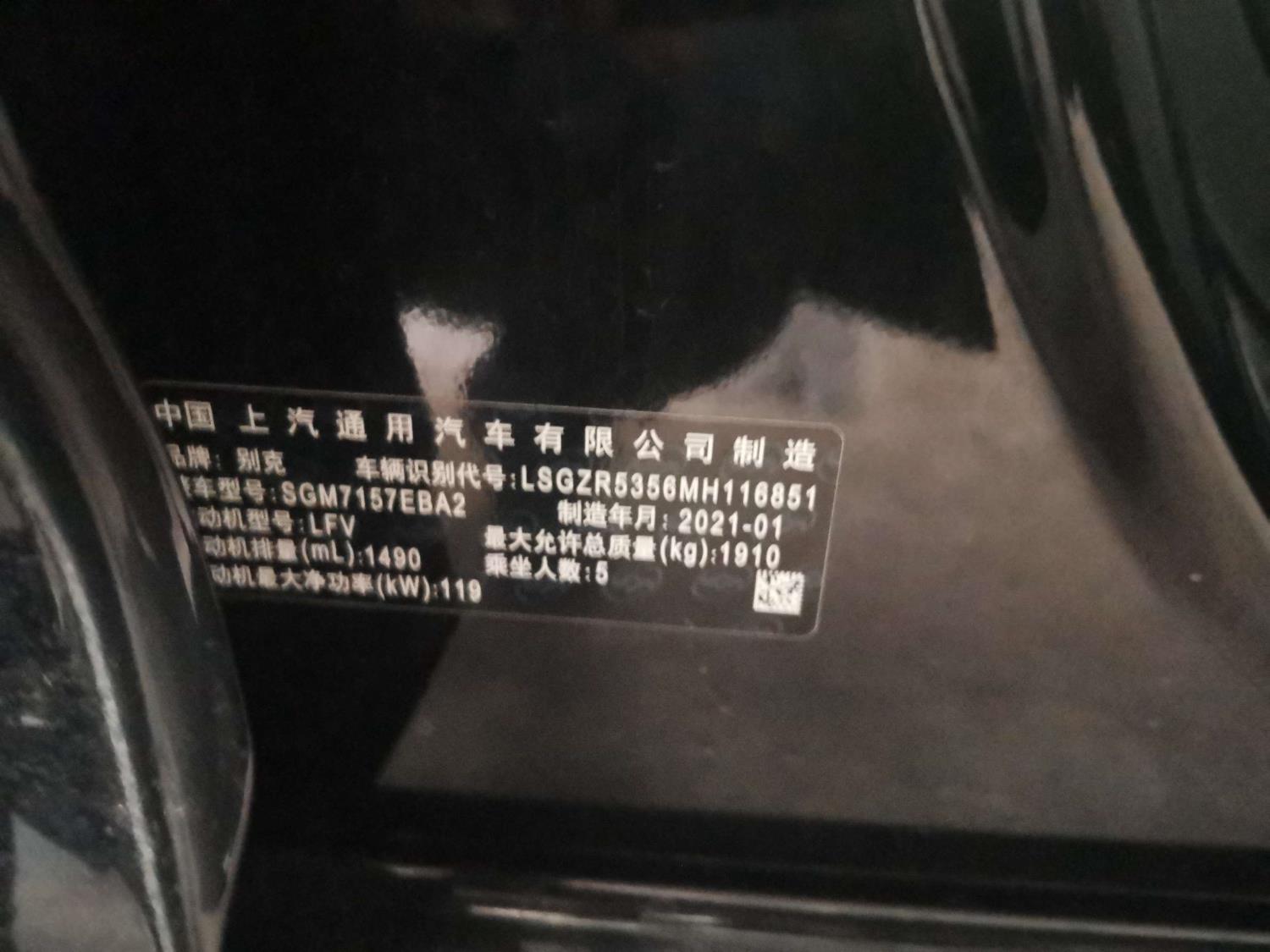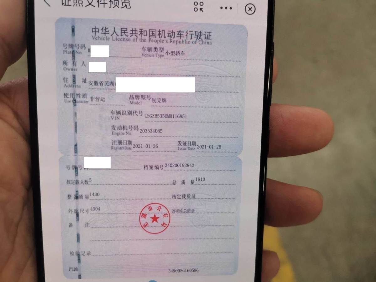初次登记日期 2021-01-26 车辆名称 别克 君威
