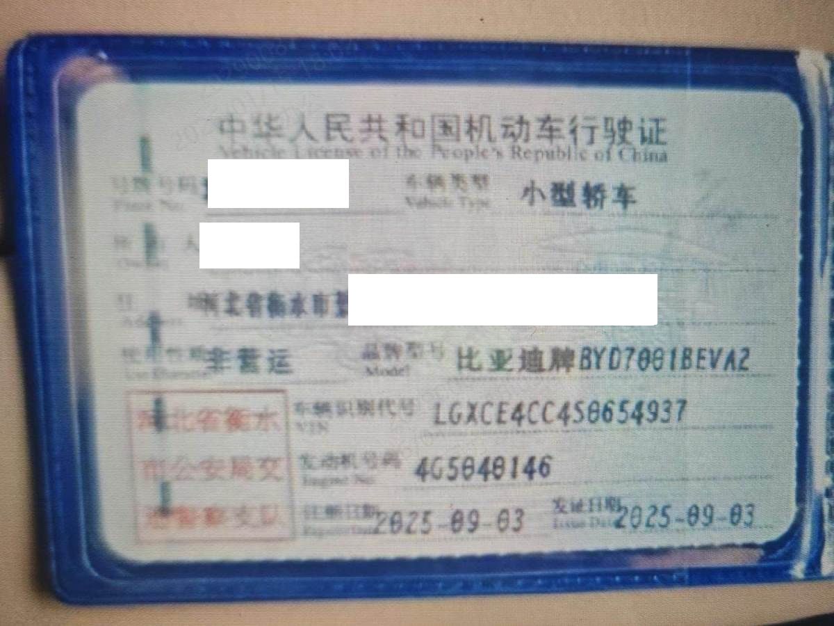 初次登记日期 2025-09-03 车辆名称 比亚迪