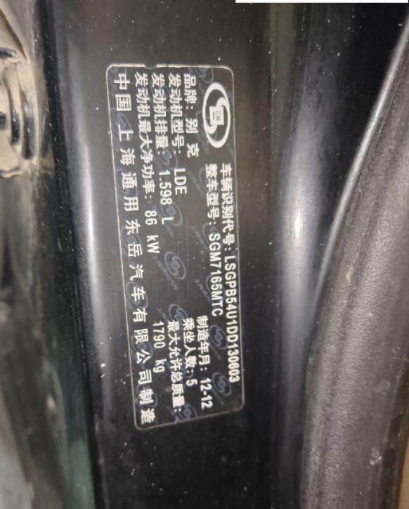 初次登记日期 2012-12-27 车辆名称 别克 英朗