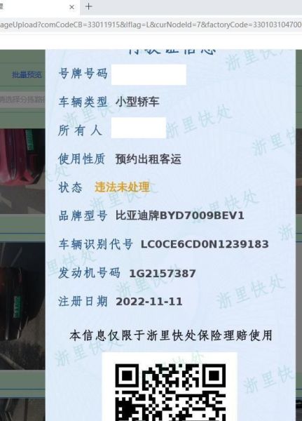 车架号是否受损 未知 使用性质 预约出租客运