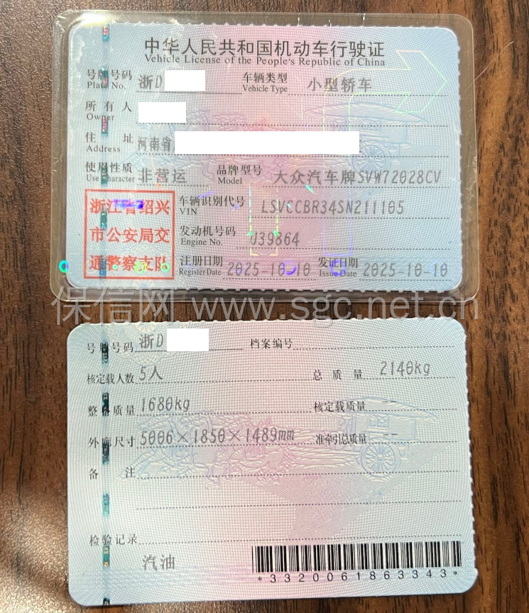 车牌号 浙****** 品牌 大众