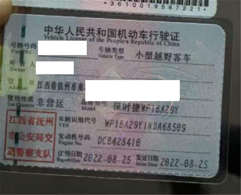 车牌号 赣****** 品牌 保时捷