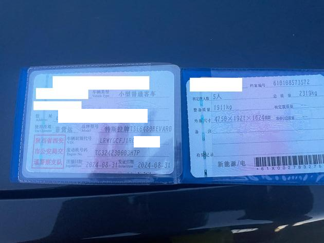 初次登记日期 2024-08-31 车辆名称 特斯拉 Model