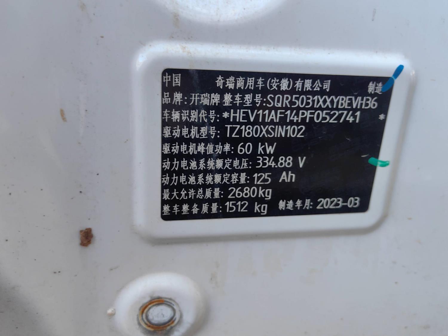 初次登记日期 2023-06-27 车辆名称 开瑞 江豚