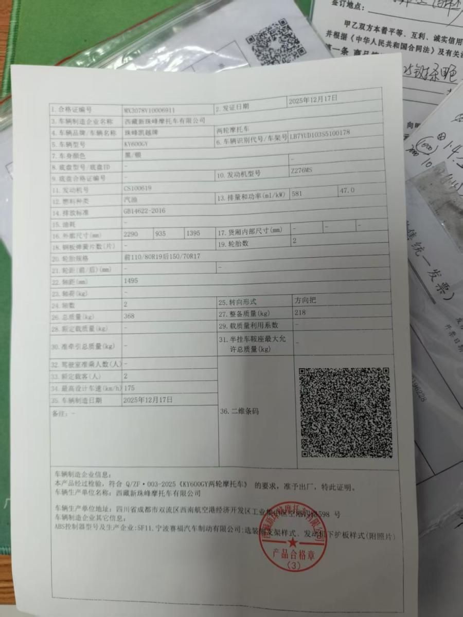 初次登记日期 2025-12-24 车辆名称 珠峰凯越