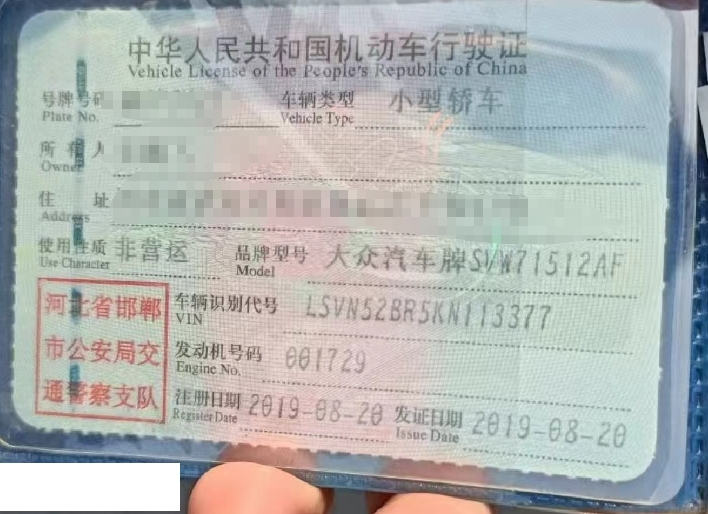 初次登记日期 2019-08-20 车辆名称 大众 桑塔纳
