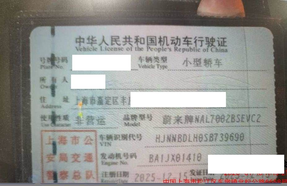 初次登记日期 2025-12-15 车辆名称 蔚来牌
