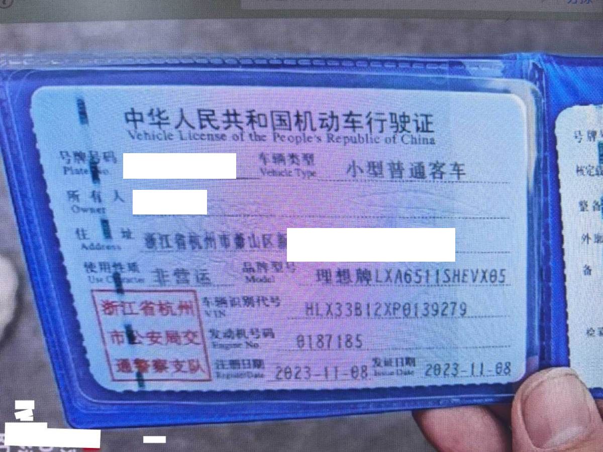 初次登记日期 2023-11-02 车辆名称 理想汽车 理想