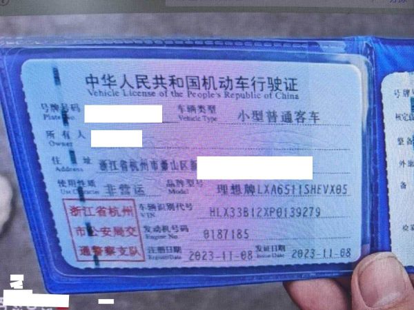 车牌号 浙****** 品牌 理想
