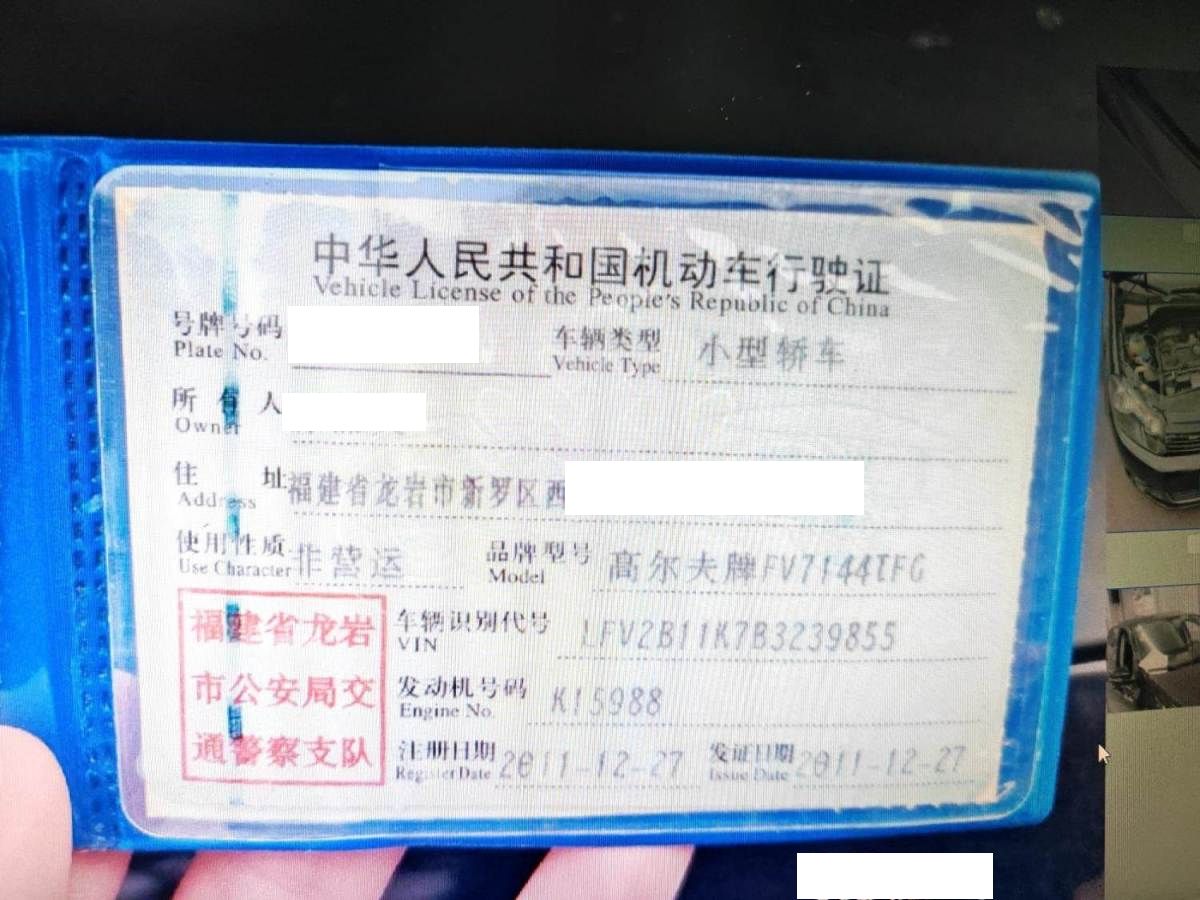 初次登记日期 2011-12-27 车辆名称 大众 高尔夫