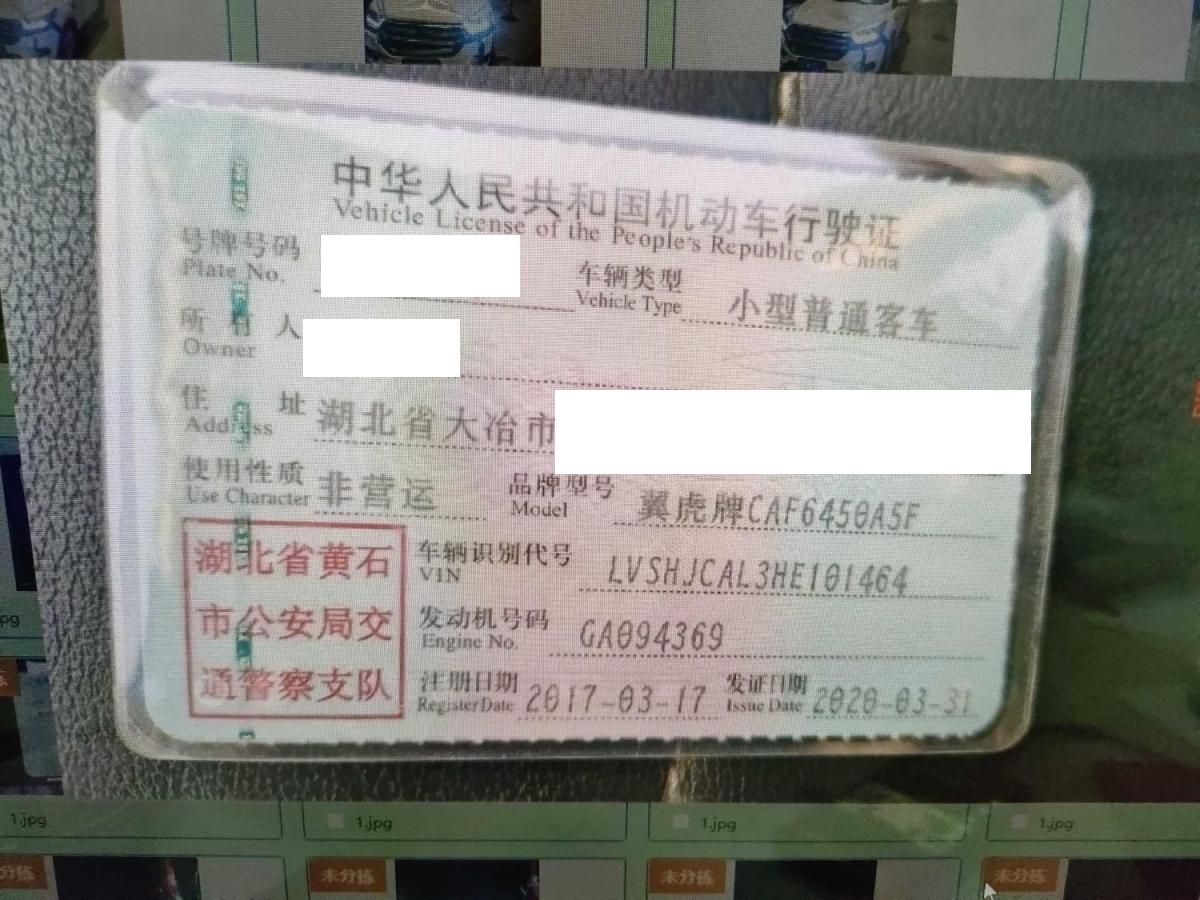 初次登记日期 2017-03-17 车辆名称 福特 翼虎