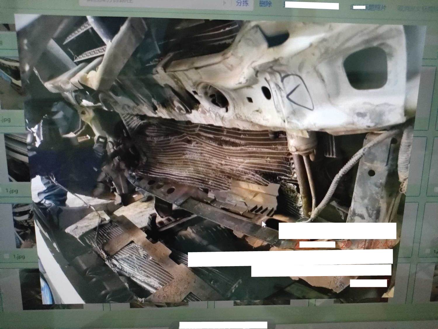 三车碰撞,标的前部受损严重,气囊炸开 5年以上车辆报价后不得以二次事故为由提出议价或退车弃标。