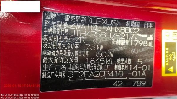 底盘号码 JTHKR5BH7E2****** 变速箱类型 自动
