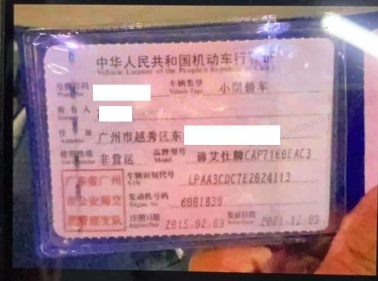 车辆归属地 广东省广州 车辆停放仓库 广东省广州市广州市