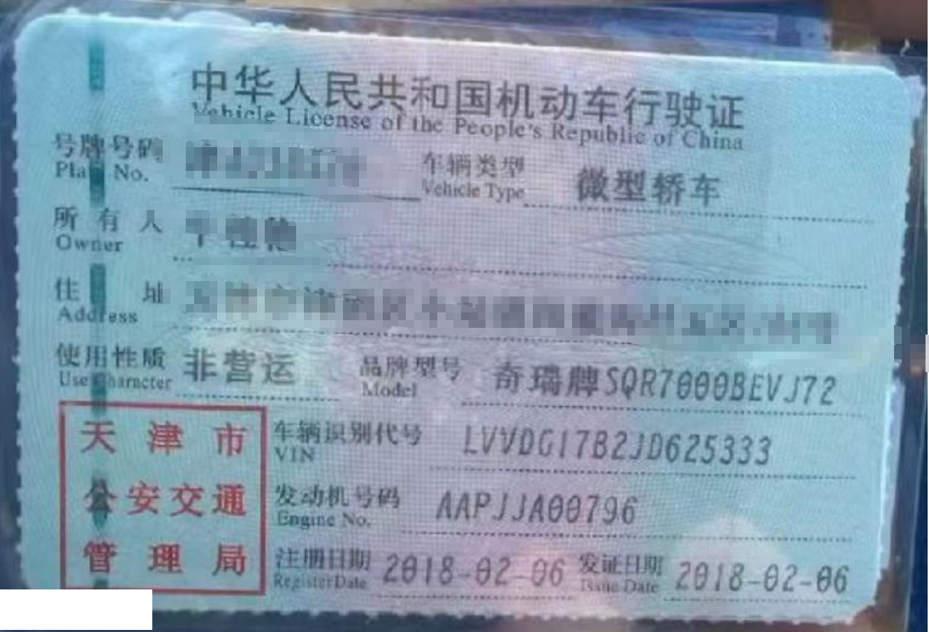 车牌号 津****** 品牌 奇瑞