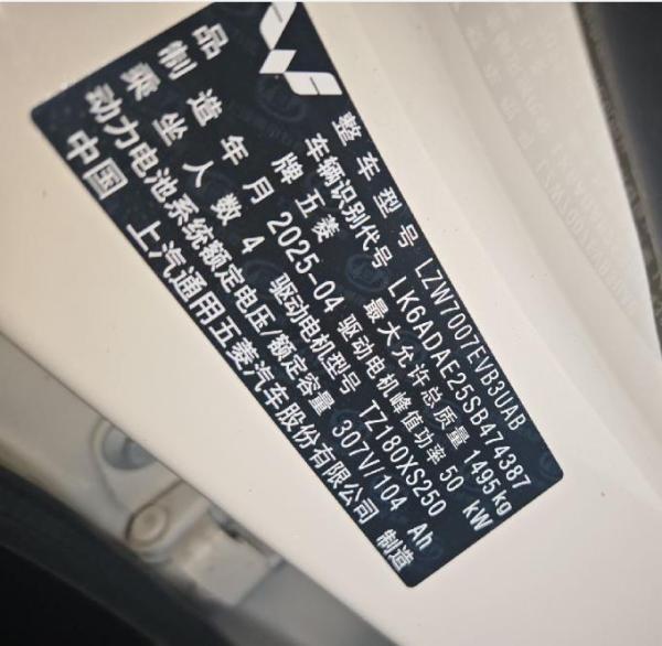 初次登记日期 2025-05-27 车辆名称 五菱汽车