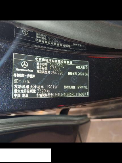 初次登记日期 2024-07-25 车辆名称 奔驰E级
