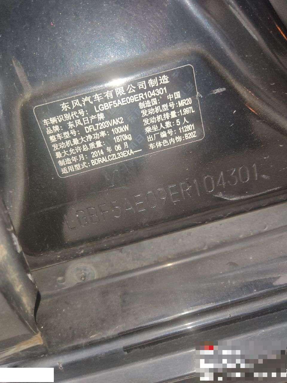 初次登记日期 2014-11-06 车辆名称 日产 天籁