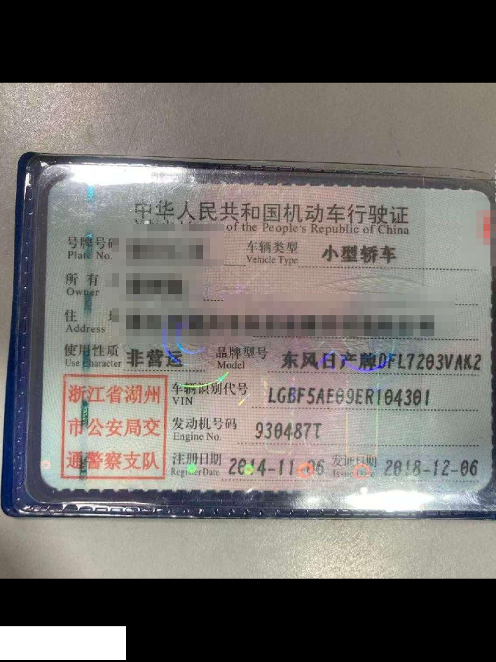 车辆归属地 浙江省湖州 车辆停放仓库 浙江省湖州