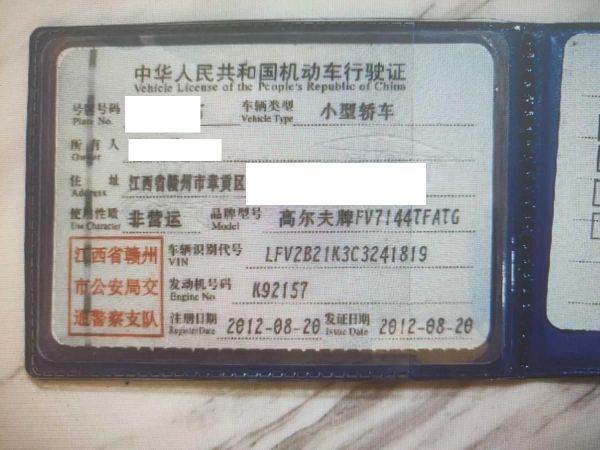初次登记日期 2012-08-20 车辆名称 大众 高尔夫